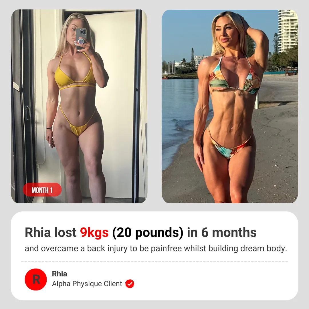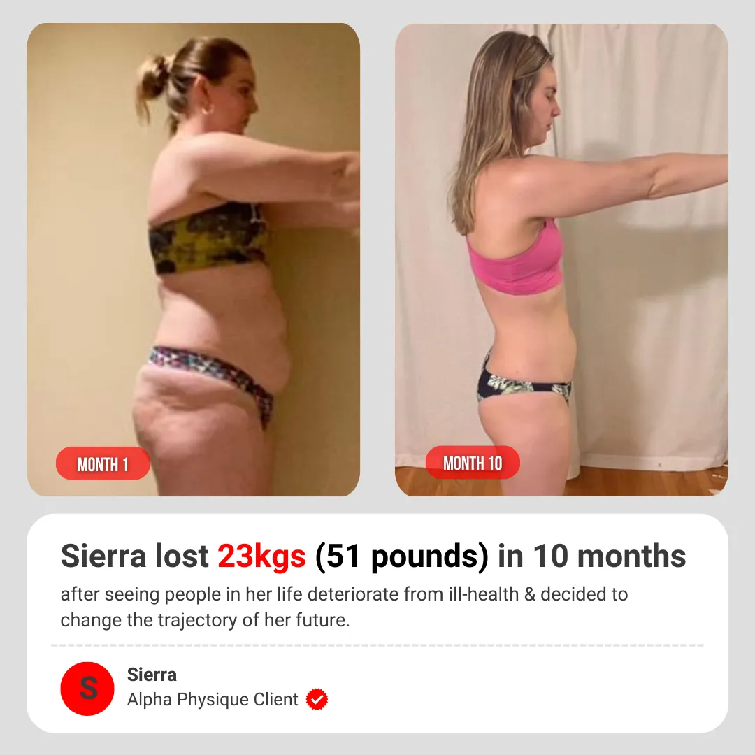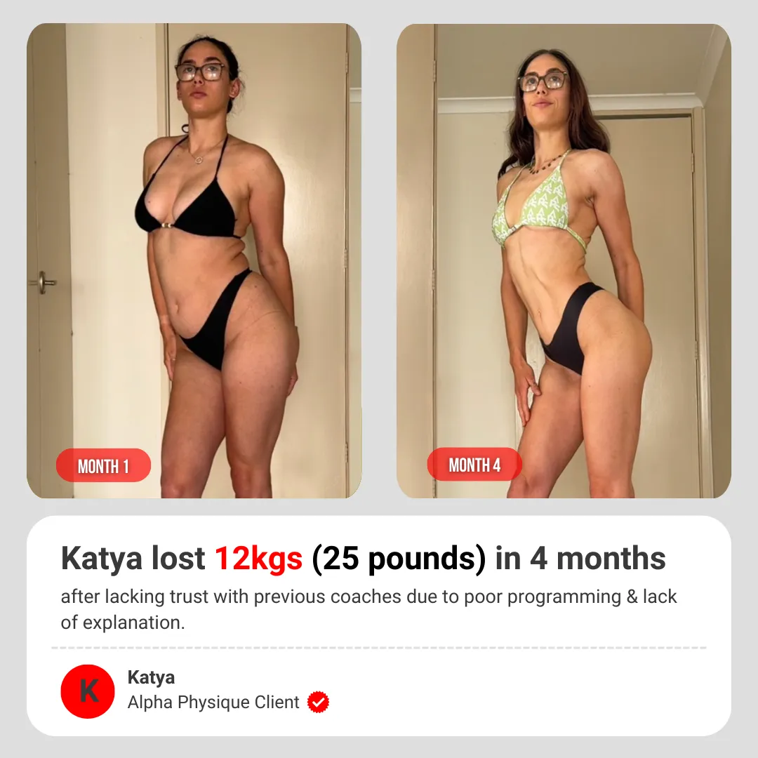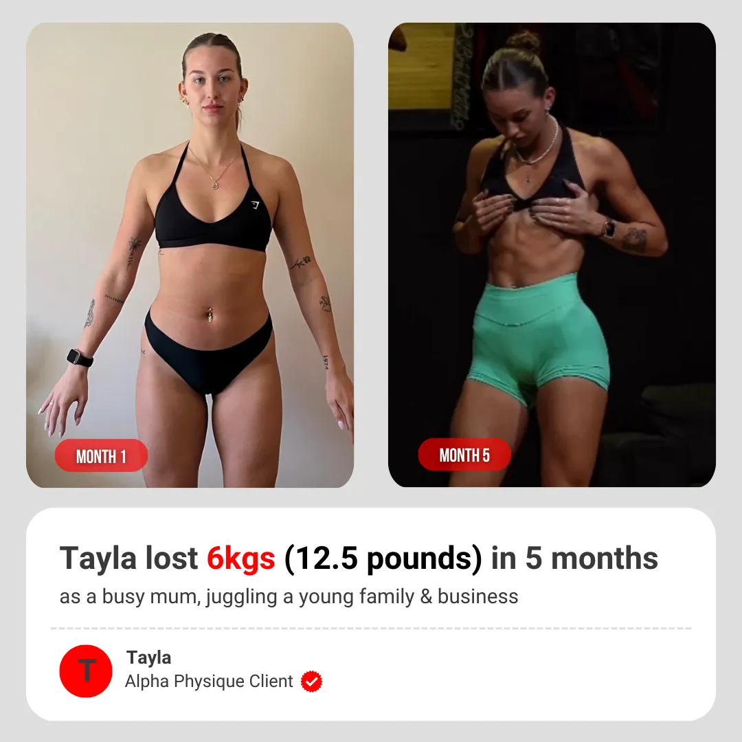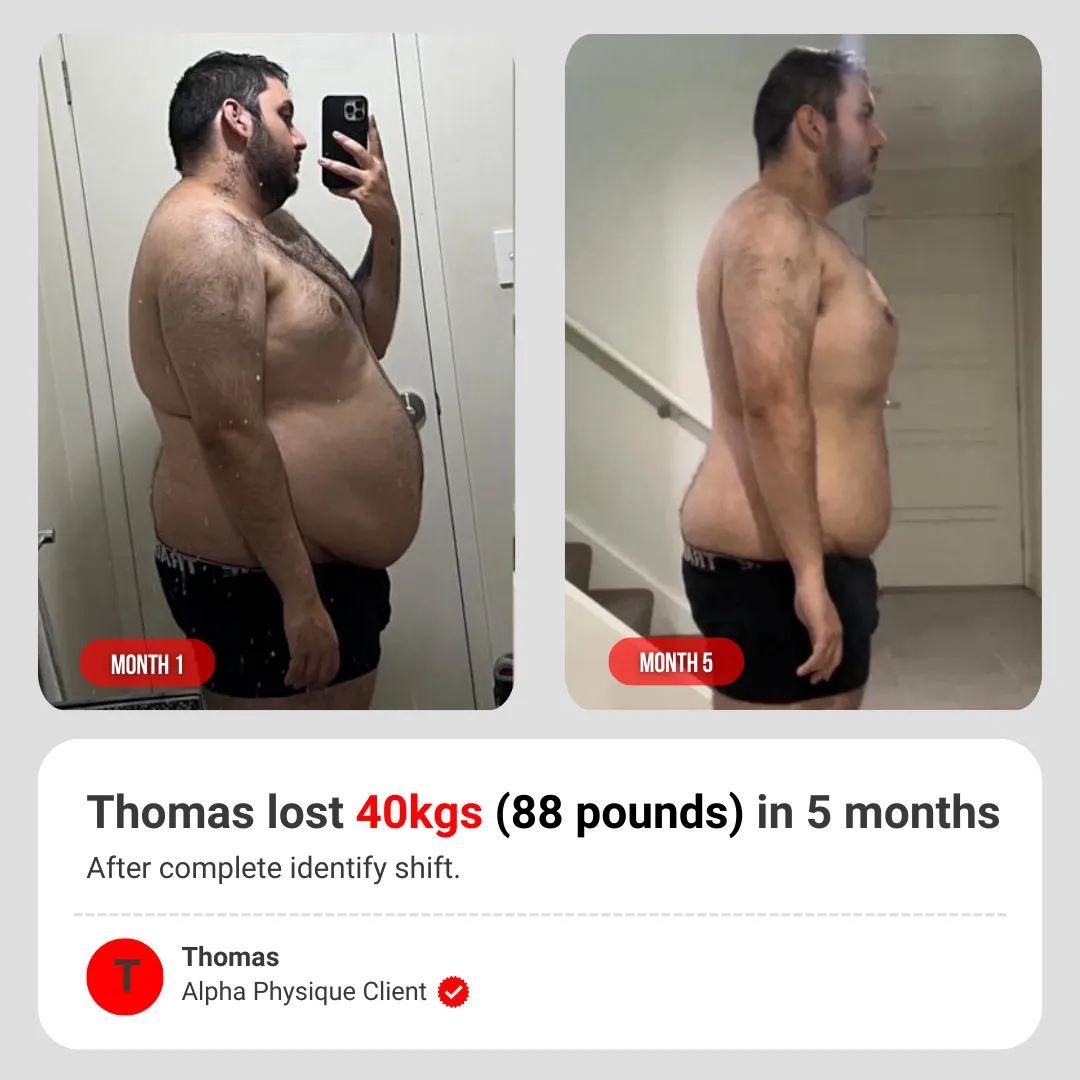 Disclaimer: Results shown are not typical and will vary based on individual effort, consistency, and starting point. Alpha Physique provides coaching and educational guidance only and does not guarantee specific outcomes. Nothing on this website should be considered medical advice. Please consult a qualified healthcare professional before beginning any fitness or nutrition program.